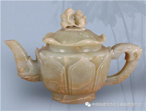 明 青玉鸳鸯卧莲云龙柄执壶 故宫博物院藏