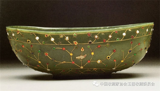 当地人相信玉做的食具可以避毒,故一般多为实用的碗、杯、洗、盘、壶等饮食器皿,不见中国玉器中常见的礼玉和佩玉。这些玉器的装饰很有当地文化特点,有些在器壁上镶嵌金、银细丝及红、绿、黄、蓝等各色宝石或玻璃;花纹装饰多为植物花叶,以莨苕、西番莲和铁线莲为主;用异色宝石嵌现动物眼睛等。除了这些装饰手法,还采用水磨技术,胎体透薄,有“西昆玉工巧无比,水磨磨玉薄如纸”之说。