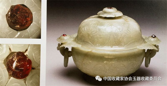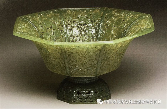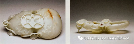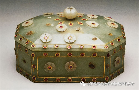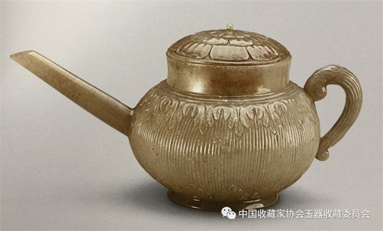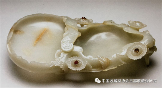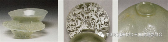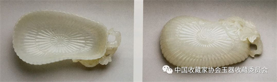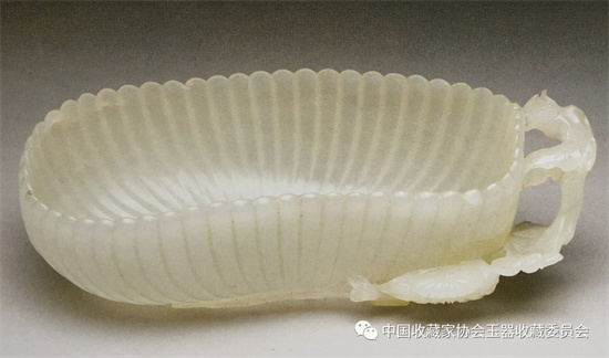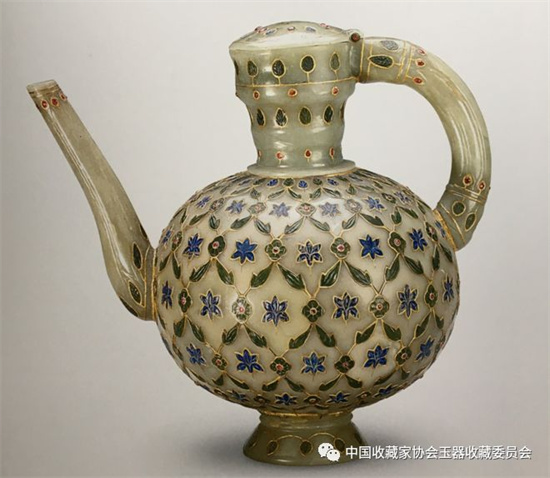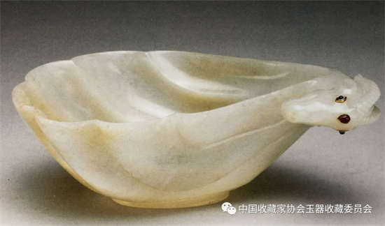 痕都斯坦玉匠喜用纯色的玉材雕琢,即一器一色,尤多选用白玉或青白玉,透明晶莹。这与中国传统玉器的留玉皮或杂色玉雕,形成了鲜明的对比。