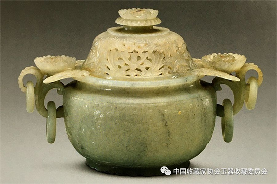 青玉薄胎雕花双耳熏炉 清宫仿制
