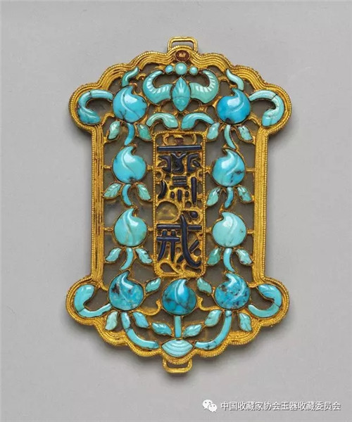 清 金嵌松石斋戒牌
