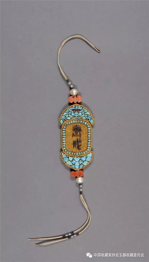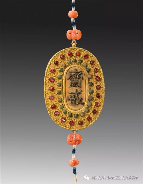 清 金嵌珊瑚松石斋戒牌