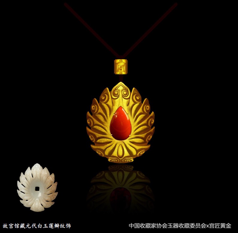 黄金被称为太阳之子,跟玉一样有着天然的贵族属性,都具有神秘和高贵的气质。为了让故宫馆藏的美玉焕发金彩,让人们从黄金佩饰中感受“古玉金韵”所带来的吉祥美好,我们特甄选故宫馆藏十个朝代的十件精美玉器,采用宫廷传统制金工艺,将现代金饰与传统文化相结合。